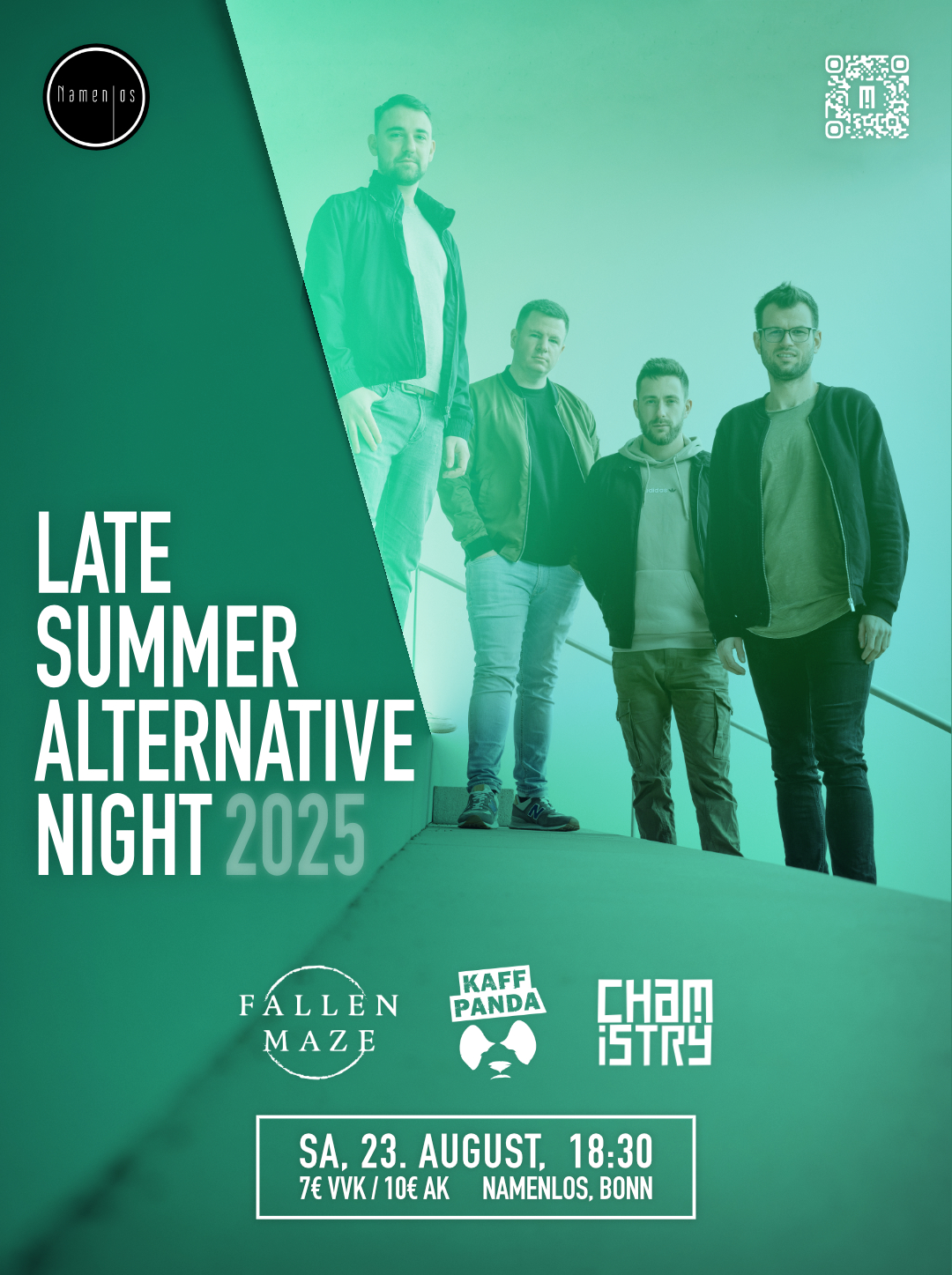 Diesmal mit am Start: Fallen Maze (Alternative/Metal/Pop) aus Koblenz, Kaff Panda (Pop/Punk) aus Erkelenz und die in Bonn heimischen Gastgeber chamistry (Alternative).
